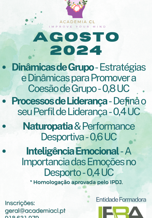 Formação homologada pelo IPDJ atribuindo à cédula profissional 0,6UC, decorrerá a 21, 22 e 23 de Agosto (21h30m às 23h30m), via ZOOM. – 60€.