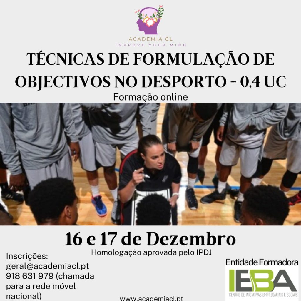 Formação homologada pelo IPDJ atribuindo à cédula profissional 0,4UC, decorrerá a 16 e 17  de Dezembro (21h30m às 23h30m), via ZOOM. –   40€.